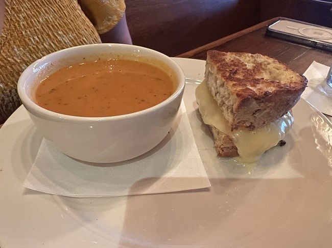 J wanted the Gourmet Grilled Cheese but was also looking at soup. Since we had the lunch menu, she was able to do the Pick Two which is half a sandwich and a side. She picked the Half Grilled Cheese and a cup of Tomato Bisque. This was exactly what she wanted and portioned perfectly. The grilled cheese is gruyere and fontina on a grain sunflower seed bun. She said both were delicious and she was really happy the Pick 2 was an option.