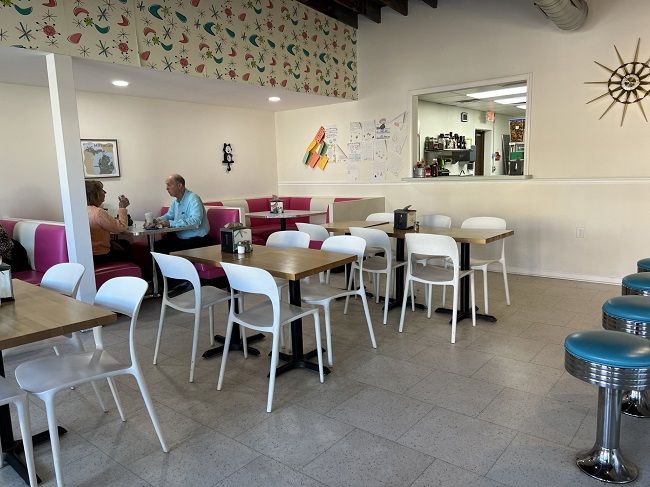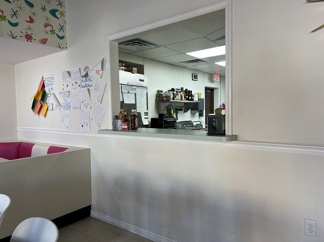 I was told it would be a few minutes so I headed in to the dining room to wait. There’s a lunch counter right at the wall that used to divide the two buildings and several tables and booths to fill the space. There’s not much in the way of decor. It’s pretty minimalist but still rather cozy.