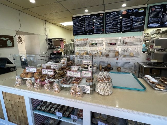 Flour Child Bakery and Cafe is on Bridge Street near Scott Street in downtown Grand Ledge. The building is a one story older brick building that used to be two storefronts. Flour child took out one of the doors and has taken over the whole building. The bakery opened in 2016 after starting as a booth at the Grand Ledge Farmer’s Market. It was named best Best Lansing Area Bakery four years in a row by City Pulse’s Top of the Town. They’ve expanded over the years and even opened up an event space late last year.