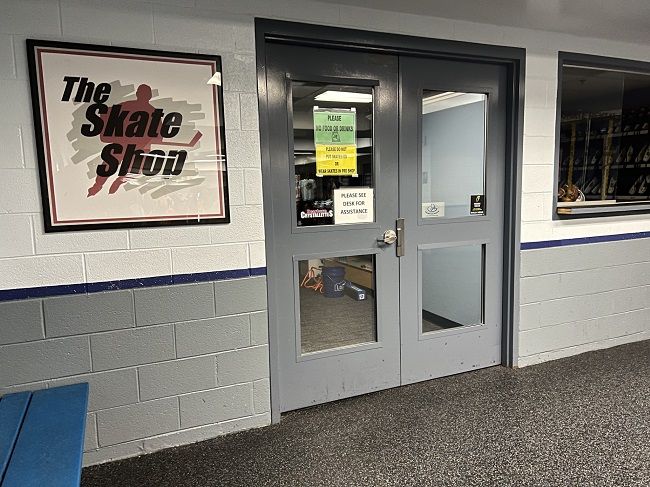Right outside the Kilpatrick Arena is The Skate Shop. It’s open by appointment and they have hockey and figure skating accessories and offer skate sharpening for both. This is also where you’d get rental skates for public skate sessions through the walk up window next to the main entrance.