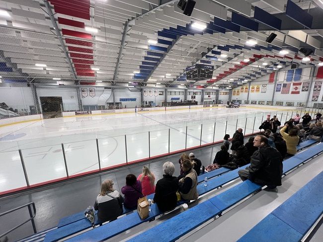 There are two rinks in The DISC. The original rink is the oldest. It’s a 1500 seat NHL sized rink. This ice sheet is known as the Adray Arena, named after local businessman Mike Adray. When it was just one rink, the Ford Woods Ice Arena was renamed the Mike Adray Sports Arena in 1981. When the second rink was built, the name stayed with this sheet of ice while the whole complex was renamed The DISC. This is the arena the competition took place in.
