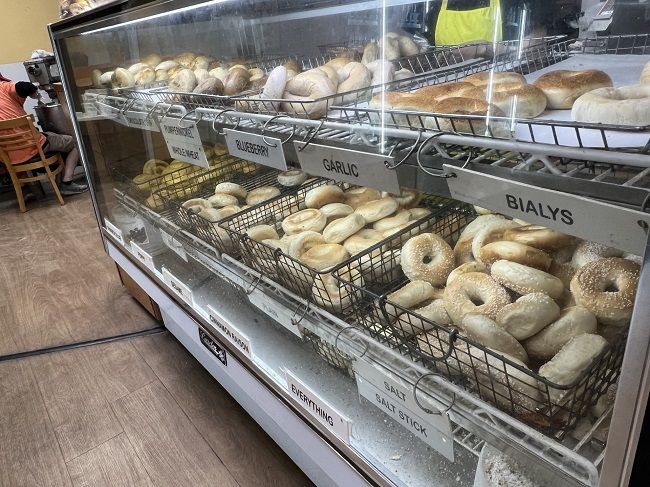 Next to that is the bagel display where all of their fresh made bagels are stored prior to being sold.