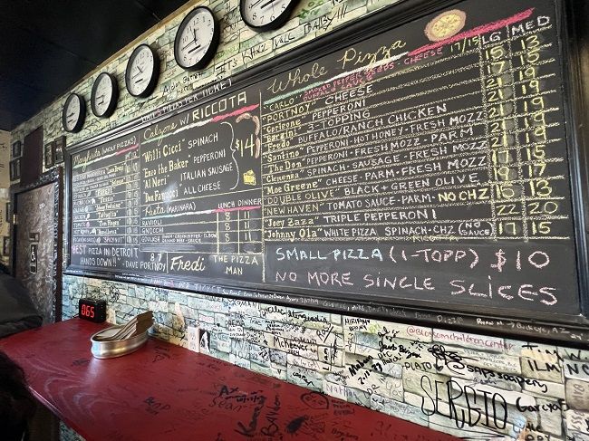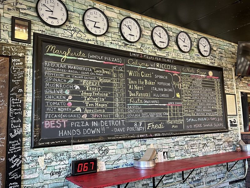 Fredi The PizzaMan is one of those Michigan bucket list restaurants. The small red brick building sits on the corner of Allen Road and Clarence Street in Melvindale. The restaurant has been around since the early 1980’s but it has really blown up in the last few years thanks to (person I’m not a big fan of) Dave Portnoy and his Barstool Pizza Reviews. It was always a staple of the Detroit pizza scene but it’s now a place that people travel all over Michigan (and beyond) for. And while I don’t like Portnoy or anything he stands for, he is 100% right about how great this place is.