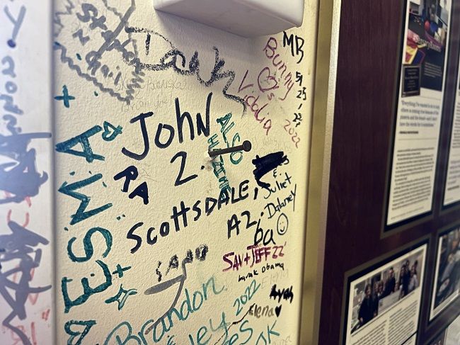 Speaking of the walls, they’re covered in signatures from all of the people that have eaten at Fredi’s over the years.