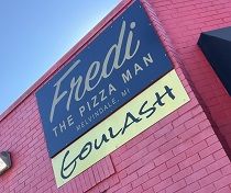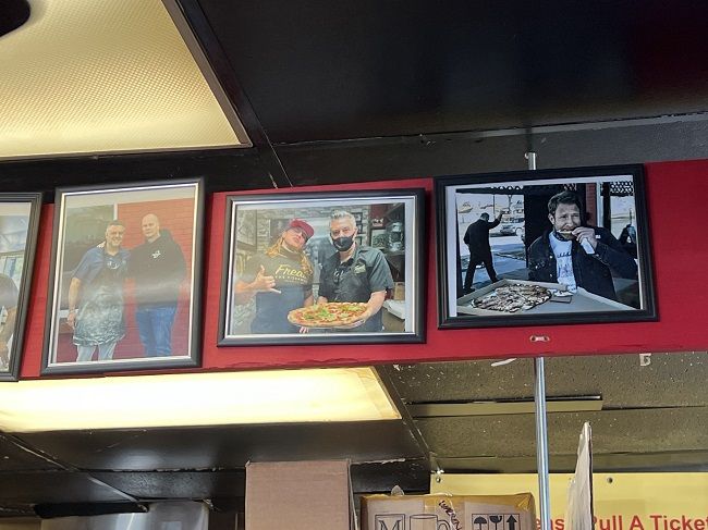 The more famous people who have stopped at Fredi’s get a little more than their name written in Sharpie on the wall. There are pictures hanging above the order counter of several pro athletes and other recognizable people who have stopped in for a pizza.