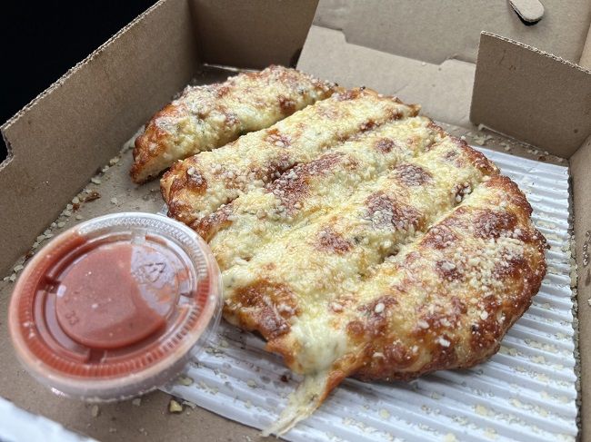The Benito Bread is essentially bread sticks covered with mozzarella cheese, garlic butter and Parmesan. There was a lot of golden brown cheese on the top and a strong garlicky flavor that dominated. The bread came with some marinara for dipping but I had eaten most of the bread heading back to my hotel a few miles away. It was so good on it’s own, it didn’t really need the marinara sauce.