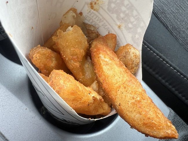 I grabbed the box of wedges next. These were a lot crispier than I expected them to be and really hot even after having a few minutes to cool down in the car. There was a really nice crunchy exterior and then all that warm steam burst out from the soft, pillowy inside. These were really good wedges for something that sits in the warmer for a while.