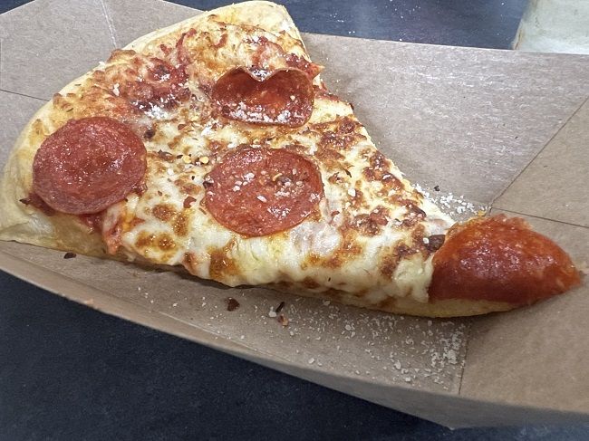 Pizza by the slice is also an option. If you want a whole pizza, you can call ahead and get one to take home. I did not need a whole pizza but I still wanted to try the pizza so I grabbed a slice to go with the other stuff I already had in my hand.