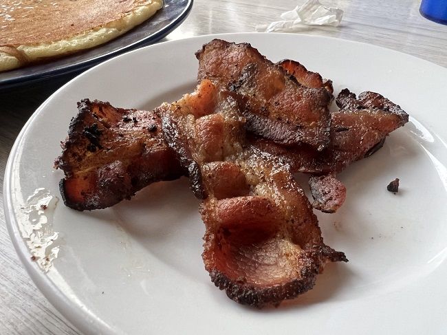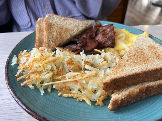 J picked the #2 from the Local Favorites section. This is a pretty simple breakfast consisting of two eggs, meat choice, hash browns, and toast. She got the eggs scrambled and the meat baconed. Simple but delicious breakfast.