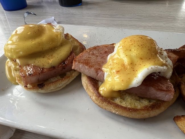 There’s a big menu of “Bennys” but I like to keep it simple and traditional with Benedicts. I picked the Traditional Benny that comes with two English muffins, poached eggs, grilled ham and hollandaises sauce. The plate was built with each muffin being it’s own thing. I asked for the eggs to be a little bit harder and they came out perfectly. There was still a little bit runniness to the eggs but it didn’t scatter all over the plate. I just love Benedicts because there are so many different texture and so many flavor profiles in every bite.