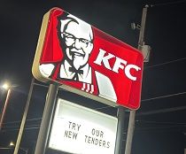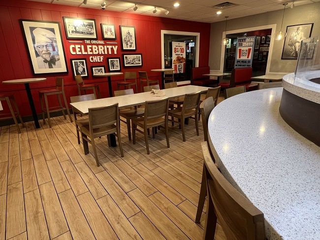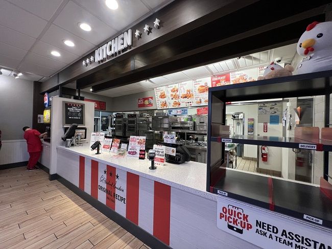 The dining room is typical fast food dining room other than they have a big rounded bar with stools to sit at underneath a giant chicken bucket. The restaurant doesn’t really feel like the old Kentucky Fried Chicken’s I went to when I was a kid. This is much nicer with wood floors and clean but very KFC wall décor.