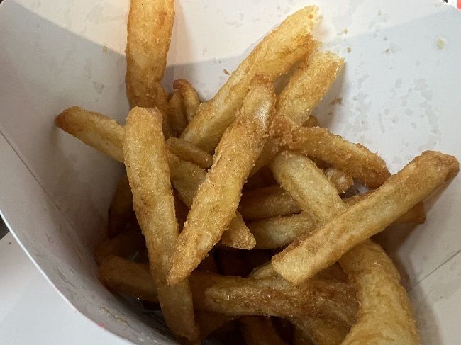 I started with the fries when I got settled in. The box was only about half full of a battered restaurant style fry. These definitely needed something to dip them as I’m not a huge fan of this type of fry. I paid the extra for the large and while I got the bigger box, I’m not sure I actually got a large fry.