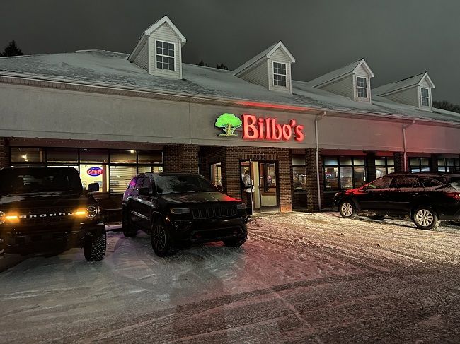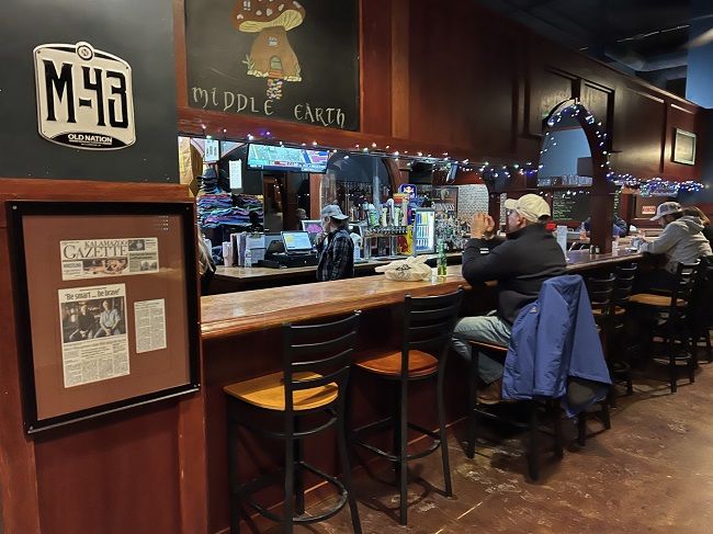 Bilbo’s Pizza & Brewing Company is on Stadium Drive in Kalamazoo’s Oakland/Winchell Neighborhood west of Rambling Road right next to the Buffalo Wild Wings. The building is unique, as you’ll see once we get inside, as it’s themed after The Lord of The Rings…hence the name, Bilbo’s.