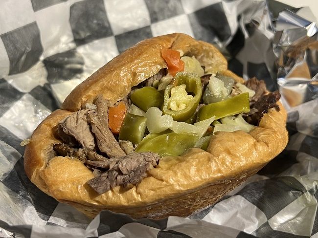 The beef was really good. It was really tender and had the strong oregano flavor that makes Italian beef so distinguishable. There was a large spoonful of hot giardiniera on top of the beef which gave the sandwich that kick. The bolillo roll was a really interesting bread choice and one that worked way better than I though it would. The Mexican bread is very similar to French bread. It has that crusty outside and the soft, flaky inside. Perfect for this kind of sandwich. The bread was opened up more like a pita bread and the meat and veggies were stuffed inside. That did help quite a bit with eating it so it wasn’t quite of a mess as Italian beef’s usually are.