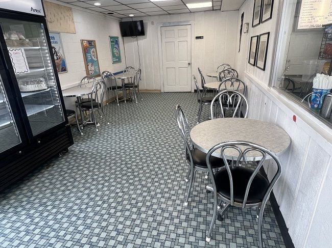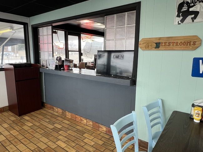 While this is a drive in and you used to eat in your car, there is actually a dining room inside the building here so you can sit down and enjoy a meal.