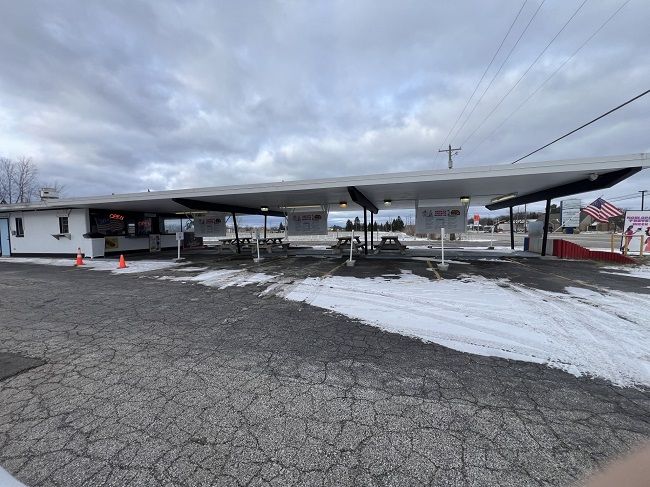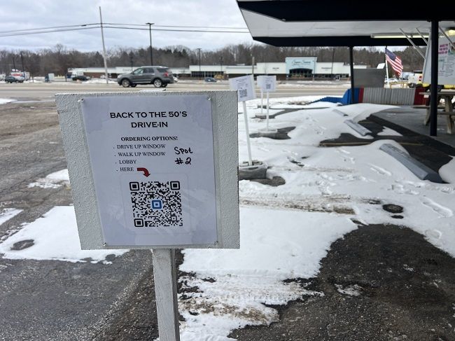 The restaurant is still set up like a drive-in from the 1950’s. They have car hop spots but they don’t do car hops. That part has been brought in to the 2020’s with QR code ordering.