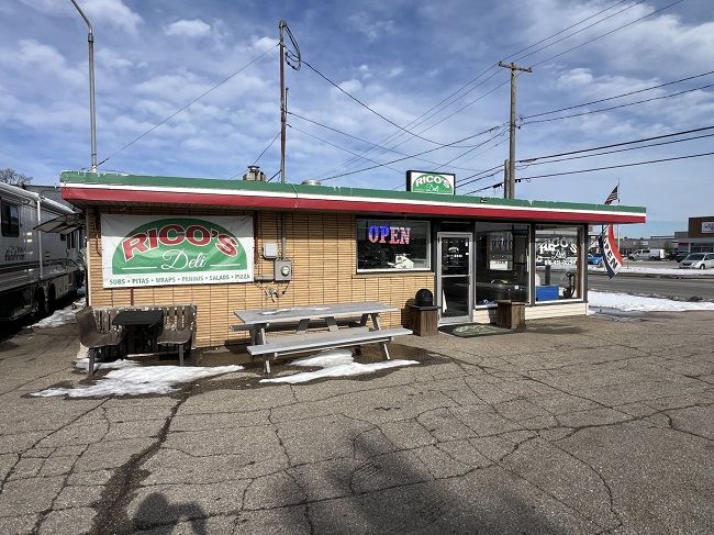 I stopped at Rico’s Deli on Alpine Avenue northwest north of Ann Street. The small deli is in a building that comes up with a Grand Rapids address on Google but is inside the Walker city limits. The small building was a Franco’s Pizza shop for a long time but Rico’s Deli moved in in 2022. The deli is a long time staple in Grand Rapids having previously been on Front Avenue about three miles away and before that on Monroe Avenue. I actually went to the Monroe Avenue location in 2014 and I have no recollection of it. If it wasn’t for an old blog post, I wouldn’t have remember that I ever ate there. I apparently really liked the sandwich but I’m not sure if I ever went back. It was in an odd location and I didn’t go to that area very often. This location is much more visible on the very heavily traveled Alpine Avenue. The small brick building stands out amongst the heavy chain commercial buildings in the area.