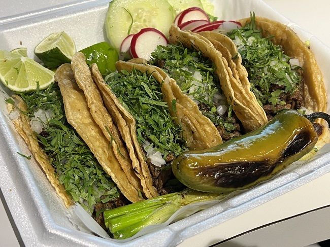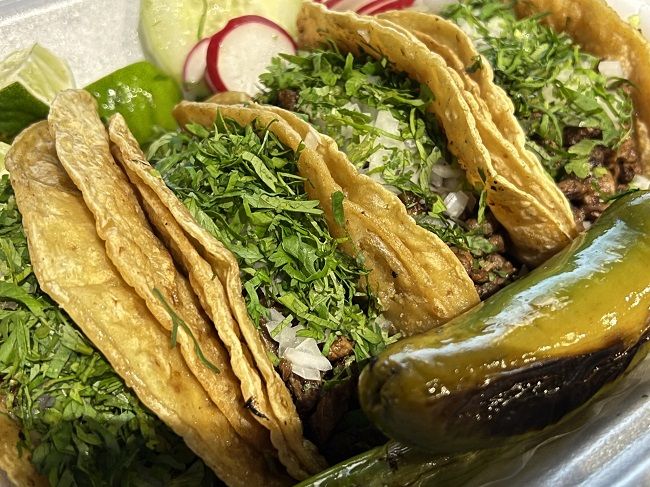 The truck I passed sits at the Super Carniceria Las Palmas on the corner of East Cork and St. Mary’s Street just to the west of Lovers Lane. The food truck is parked out front and kind of blocks the sign for the meat market if you’re coming from the west. The store has been there for seven or eight years. The food truck is a fairly new addition. This spot has a history of being a restaurant. It was a Hogzilla BBQ joint for a few years and a Little Caesars for many years before that.