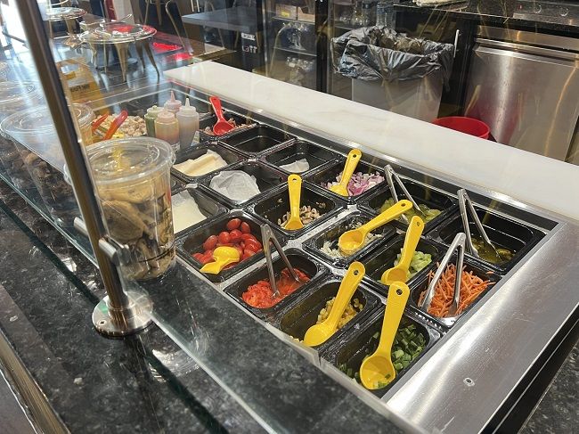 The restaurant is kind of set up like a sandwich shop. There’s a large order counter where you order on one side either from their creations or you can create your own. You also have a choice in the base for the bowl. The most obvious one is pasta but you can also choose from gluten free pasta, broccoli, cauliflower, tater tots or quinoa. If mac and cheese isn’t doing it for you, there are also grilled cheese and flatbread options.