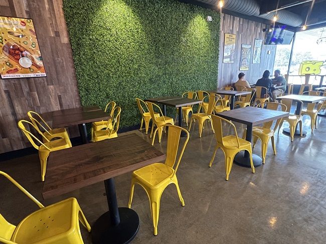 There is a pretty large dining room with those slightly uncomfortable metal chairs fast casual places seem to love. I took a seat on one of the stools by the door to wait for my order to come up.