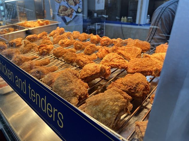 The chicken counter is right next to the cash register but it’s in a little bit of an odd area. The LCD menu boards are more towards the middle of the store and not right next to the chicken. They do have some printed menus next to the chicken so if you didn’t see the menu, you can still figure out what you want as you’re staring at all that delicious chicken.