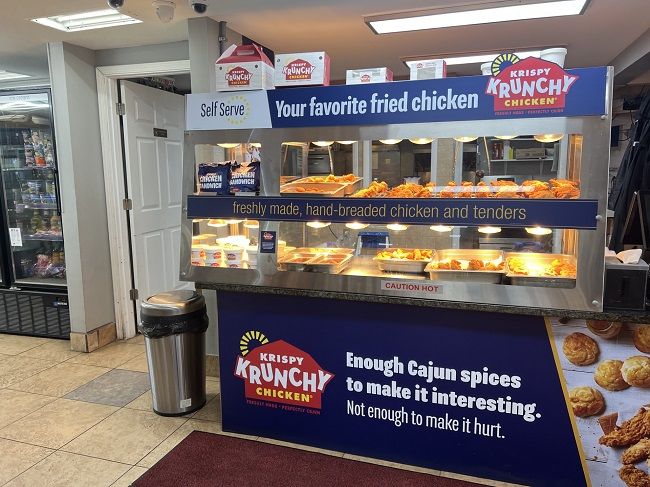 It wasn’t until I was heading to my in-laws one day when I saw a sign for the chicken joint in Mendon. This was much more familiar to me as it’s in the Marathon station. They used to do their own food but switched over to the chicken chain in 2020.