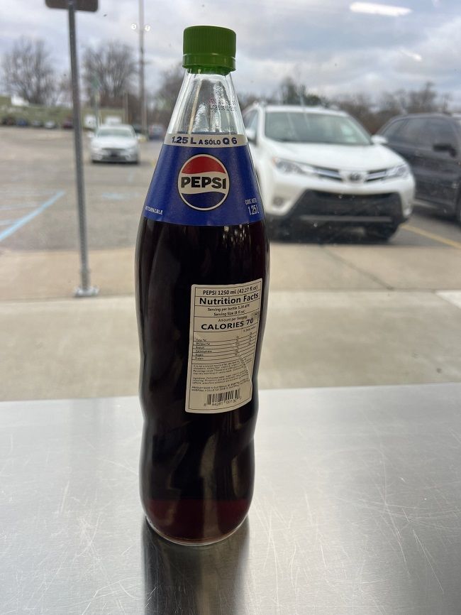 I didn’t get a drink at the taqueria so I decided to go looking for something in the grocery store. They didn’t have 20 oz bottles of Pepsi so I almost grabbed a Coke. Then I saw this massive 1.25L glass bottle and even though it was $5, I had to grab it.