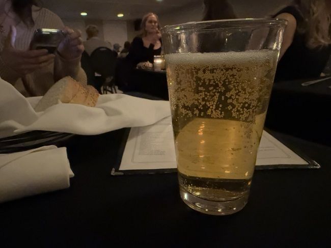 Co-worker order a glass of wine and since we’re in St. Louis, I ordered a Budweiser. Also, there wasn’t a great beer list so I just kept it simple. It was brought to me in a bottle but the server then poured it in to a glass and took the bottle back with him.