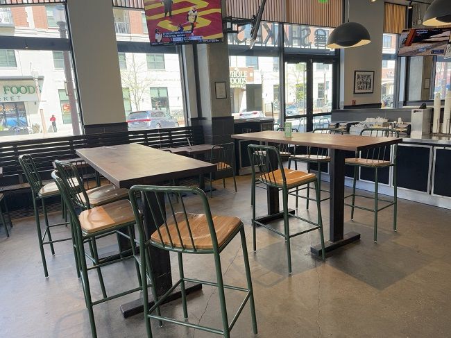 I grabbed a number off the counter then went to take a seat in the dining room to wait. The Shake Shack vibe is kind of industrial with concrete floors, high ceilings and exposed utilities. It’s the same pretty much everywhere. The dining room is quite large. This place was built in 2017…way before the pandemic changed the way people eat fast casual food. There were a few people dining in but most of the people that came in while I was there were Dashers.