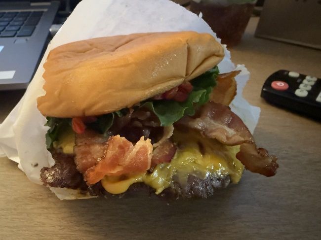 I just went with my usual Shake Shack order. I got a Double Shack burger and added bacon and cherry peppers. I made it a meal by adding on Bacon Cheese fries and a large Coke. The total for my lunch was about $25.