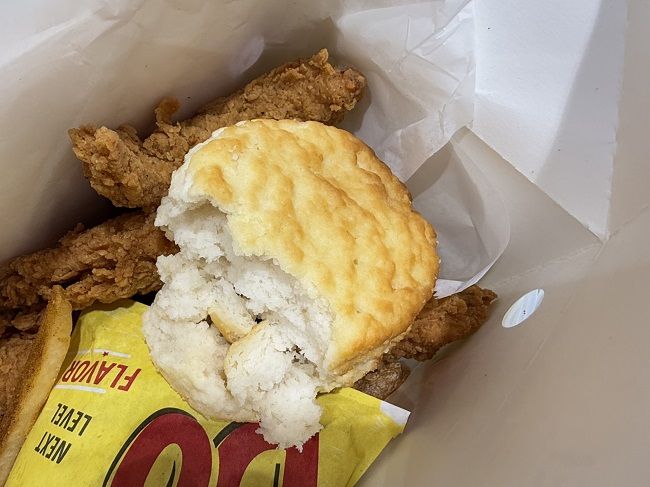 The final piece of combo is the biscuit. All chicken restaurants have good biscuits but this one just hit different. It’s so light and fluffy that I couldn’t even pick it up for a pictures without it crumbling in my hand. It’s perfect representation of what a southern buttermilk biscuit should be.