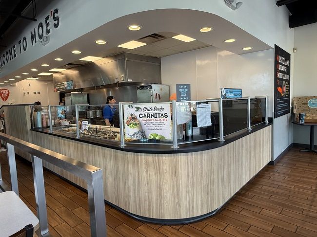 This Moe’s is set up with the menu on a wall kind of out of the way when you walk in. There is a space to the right for the line to queue because the counter is pretty close to the door. The menu is at the end of this queue space. There was no line when we walked in so I had to get out of the way of my family and figure out what I wanted. They all already knew what they were going to order.