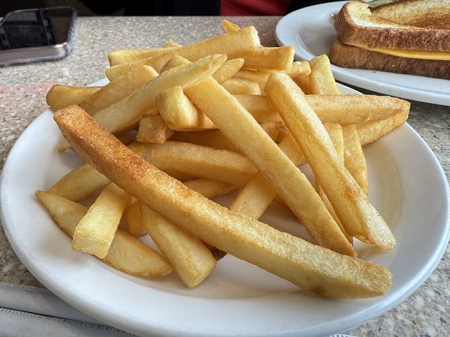 J and L both ordered the Grilled Cheese. Like me with burgers, J loves a good diner grilled cheese. They’re so simple. White bread and American cheese…just like you make home but for some reason, these are just better. Both of them were really happy with their decision to skip breakfast and order something off the grill. Like my sandwich, these didn’t come with a side. J ordered fries but L did not.