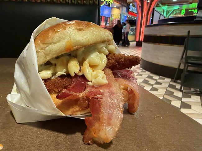 The Buffalo Mac ‘n Cheese sandwich is quite a creation. Each of the sandwiches come with two fried (or grilled) chicken breast patties. This one is dipped in Buffalo sauce then topped with mac ‘n cheese and smoked bacon and garlic parm sauce. The mac ‘n cheese really dominated the flavor of this sandwich. The chicken is really crispy and that’s the main texture but there isn’t a lot of flavor that comes through with it. I probably should have just ordered tenders so I could taste the chicken. Between the mac and the bacon, the chicken was all but drowned out. It was still a really delicious sandwich. I would absolutely order it again. It just wasn’t super noticeable that there were two chicken patties underneath the mound of mac ‘n cheese.