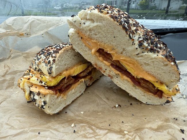The Breakfast Bagel starts with choice of bagel. I went with the Everything. It’s filled with egg, American cheese, and meat. I picked the bacon which was super crispy, delicious bacon. My love for bagel sandwiches is fairly new but man do I love a breakfast sandwich on an Everything bagel. This one is so good and the bagel is so much better than the ones you find at bagel chains. This sandwich was just oozing with cheese that held the crispy, salty bacon on top of the folded egg.