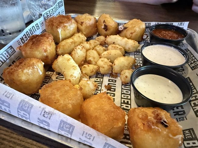 My mom agreed once she saw them on the menu. We got the Curd Sampler which has all of their curd options. There are huge curds that come in Classic, Fire (pepperjack cheese coated in a Chipotle batter), and Mozzarella. The fourth curd is much smaller and they call those Fair Curds as it’s more like something you’d get at the county fair. The tray came with ranch, chipotle ranch, and marinara for dipping.