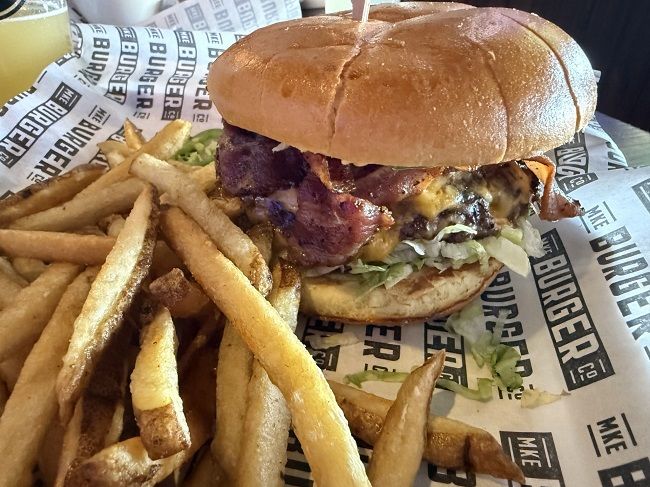 Milwaukee Burger Company is a small Wisconsin chain of seven sports pubs restaurants specializing in burgers. The Pleasant Prairie location is on 77th Street near 99th Avenue in the Shoppes at Pleasant Prairie. This whole area of east of I-94 is very heavily commercialized and is the home to dozens of restaurants. I’d be back in this area several times over our three days in Pleasant Prairie to pick up food. As for Milwaukee Burger Company, it anchors a shopping plaza in front of Target that it shares with a Crumbl Cookie and a Counsins Subs.
