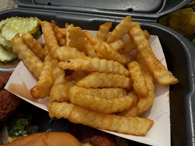 I started with the fries thinking I better get to them while they’re hot. Problem was, they were never hot. The fries are frozen crinkle cut fries with a heavy seasoning on them that did give them a bit of a spicy bite. The fries themselves though were cold and had clearly been sitting there for a while. That didn’t stop me from finishing them but it was a bummer.