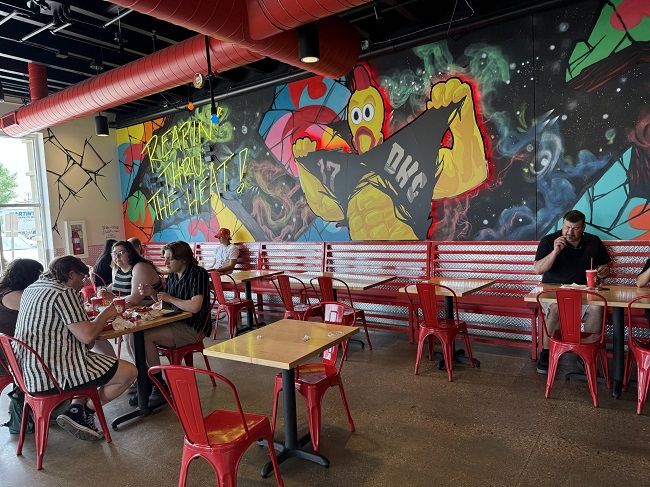 Dave’s Hot Chicken in Kenosha is on Green Bay Road north of 67th Street in the Indian Trails Plaza. The restaurant is part of small shopping plaza in front of a Lowe’s that also includes a Red Robin. I wasn’t planning on eating there nor did I know it was even there so we didn’t put an order in ahead of time.