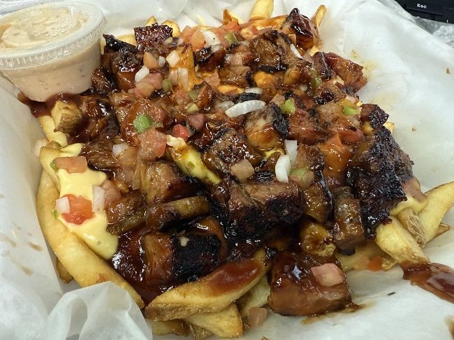 I put in an order for the Burnt End Fries. I figured I could get both fries and some tasty BBQ on the same plate. The cost was a little under $15 and it took about ten minutes for the fries to cook and everything to be assembled in a to-go box for me.