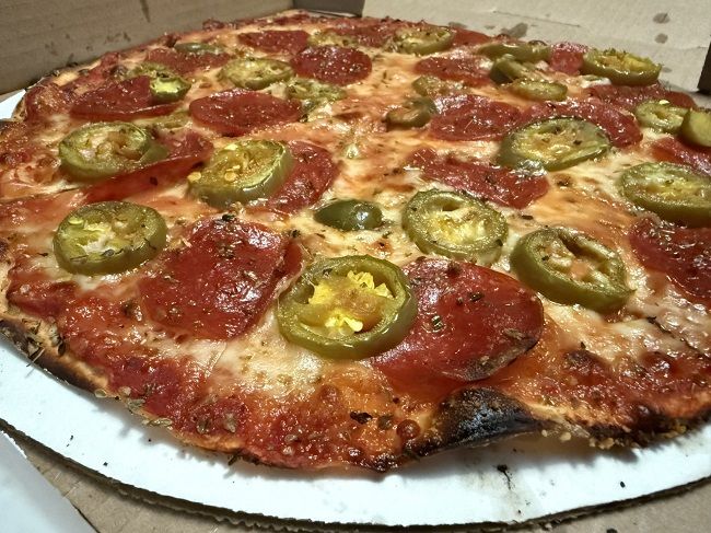 One of the things they kept on the menu from Fricano’s was the pizza. When I initially started looking at the menu at work, I was planning on just going to sit at the bar and have a burger. I noticed the pizzas that looked exactly the same and I had some things to do at home so I changed my mind and put in an online order for a pizza with pepperoni and jalapeno. The cost was $19 with a tip. Carry-out pick up is at the host stand now instead of the bar like it was with Fricano’s so the host handed me the box and another woman sitting there told me it was OK if I ate it in the car on the way. Trust me, I was tempted to.