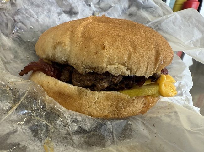 The menu called their burgers sliders which kind of confused me at first. I was thinking something small like White Castle but these were a little bigger and more of a smash burger type of sandwich than slider. I put in an order for a double cheese slider with bacon plus an order of cheese fries and a Coke. The cost came out to just a little over $13 which I paid for on my card.