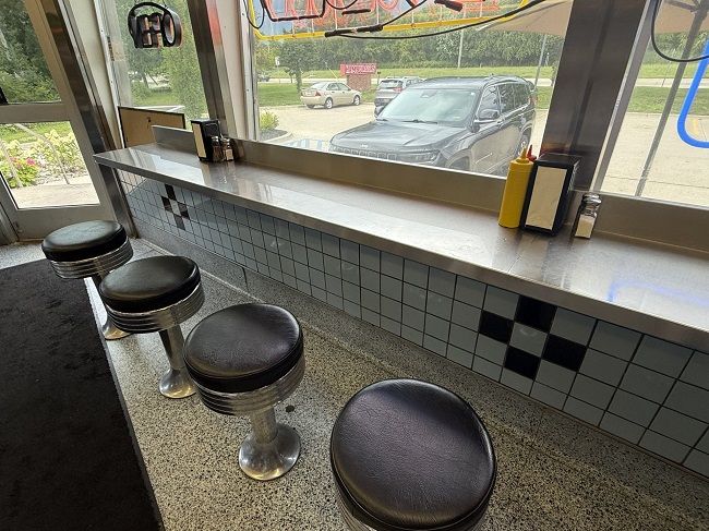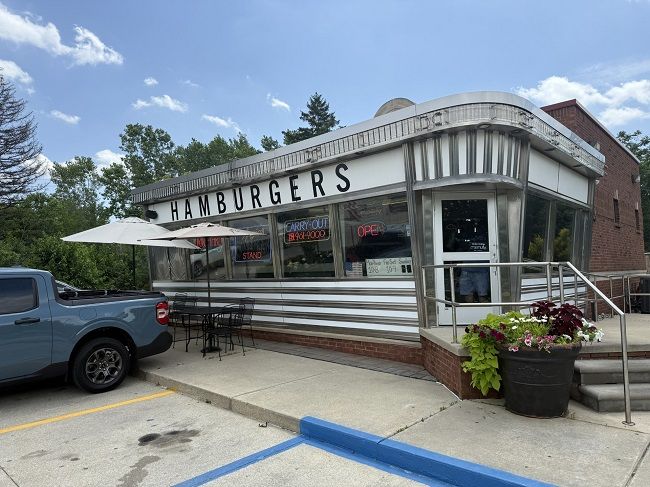 I stopped at Angie’s Hamburger Stand on Michigan Avenue near Beck Road in Canton Township just west of where the sports complex I was headed to is located. The building is an old style 50’s shiny metal diner with simple signage that just says “Hamburgers.” While it *looks* like it could actually be a 50’s diner. That’s not the case. The building was actually buillt in the early 2010’s. There was some kind of commercial building on the property but it had been vacant for a while. This restaurant cleaned up the area, added the parking, and built the retro diner as it looks today.