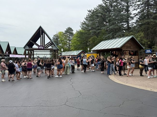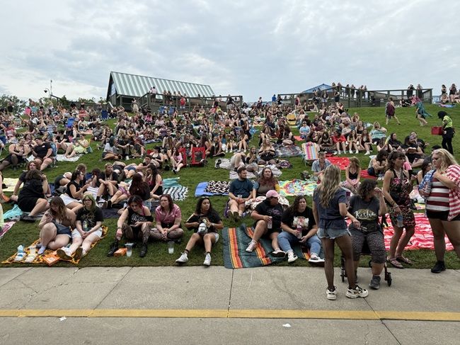 When we felt we were good to go in without getting wet, we headed towards the West Entrance. Bags were checked ahead of the walk through mags. I was kind of surprised by just how much you can bring in to Pine Knob. J’s bag didn’t even come close to the stated 4×6 but it was a clear, see through bag. They just kind of looked through it and waved her through. Blankets, chairs and even umbrellas are allowed to go through the gates. They even let you bring in one sealed bottle of water although no one actually checked to make sure it was sealed. We each just had a bottle in our hands as we walked through.
