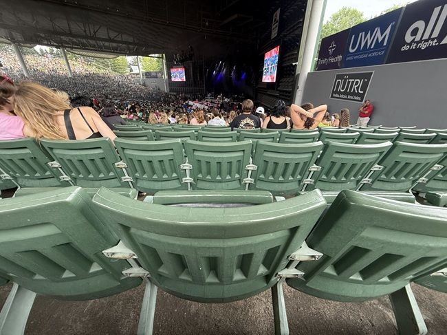 Two things surprised me about the seating at Pine Knob. The first was that the seats were actually fairly comfortable. They were plastic stadium seats but they were a little wider than the typical stadium seat and they had a padded leather seat cushion on both the back and the seat itself.