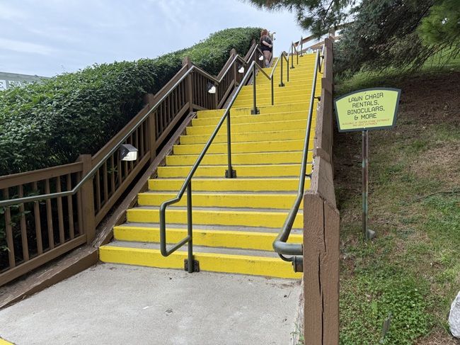 You have two choices getting to the lawn seats. You can either walk around to the front of the hill and climb through the grass or you can take these kind of steep stairs to the top and walk down. Either way, I’m way to old for lawn seats so I’m glad J got us actual seats.