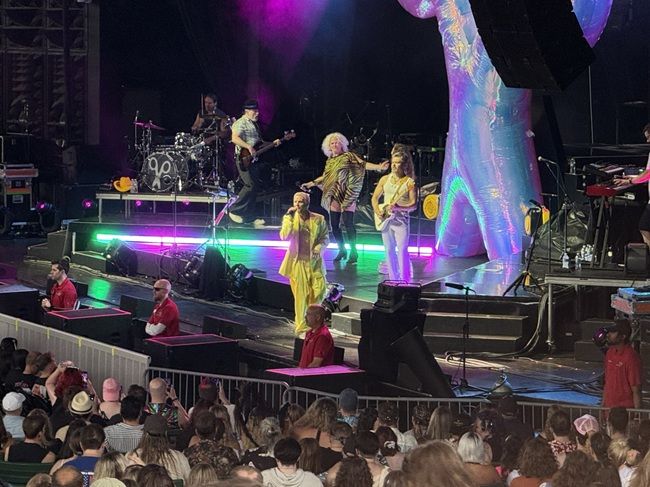 The second act is actually billed as a Co-Headliner. The group is the Scissor Sisters. We had seen a lot of videos on Tik Tok about this group not being appropriate for kids…but what do you expect from a concert…and a group called the Scissors Sisters….on a tour billed as the “Tits Out Tour?” No, it wasn’t really appropriate but so what? Most of the innuendo went over my 9 year old’s head anyway. There were parental complaints about giant inflatable boobs being part of the show but again, you’re at a live concert…if you’re worried about appropriateness, stay home. The set was fun but the music isn’t really my thing. I didn’t hate it but I wouldn’t buy a ticket to see just them.
