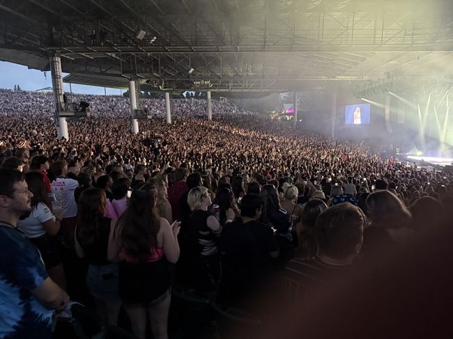 The show was not boring in any way. It started with Tik Tok which got the crowd right in to it. We always tell B he can swear at concerts if he’s singing along but it can’t be repeated anywhere else. The original opening line to the song *was* “Wake up in the morning feeling like P. Diddy.” Obviously, that lyric hasn’t aged well. The lyric is now “Wake up in the morning like FUCK P. Diddy.” B was waiting for it…as was the rest of the crowd.