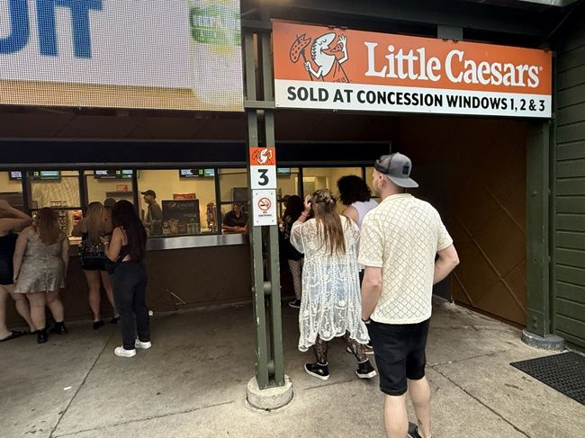 J and L went to a concession stand near our seats because J wanted a frozen drink. L wanted pizza though and that was on the other side of the amphitheater. I offered to walk over there and get her a slice of pizza. Pine Knob is operated by 313 Presents which is joint venture between Olympia Entertainment (the Illitch family) and Palace Sports and Entertainment (Pistons owners) which actually owns the property. It’s Detroit and the Illitch family is involved so you know the pizza option is going to be Little Caesars.