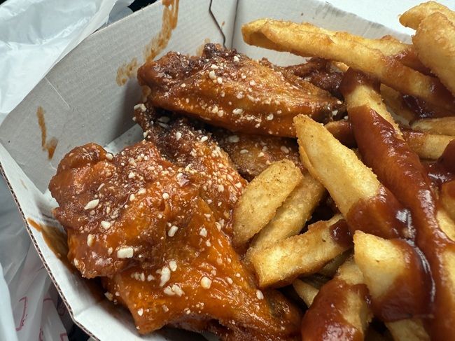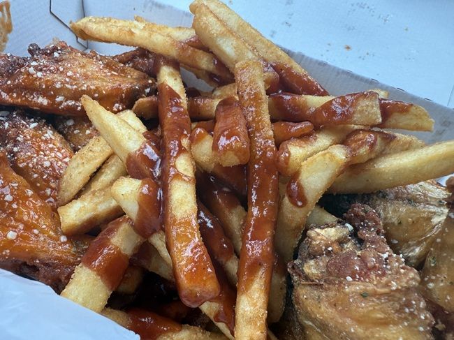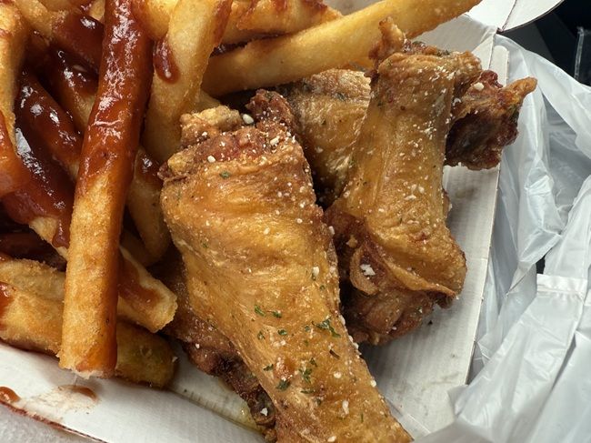 I’m a sucker for good wings and I really liked these. Everything in the carry out container that touched my lips was delicious. I loved the crispiness of the wings and really liked the idea of putting sauce on the fries. I won’t be quick to pass up Wing Snob when I run across them in the future.
